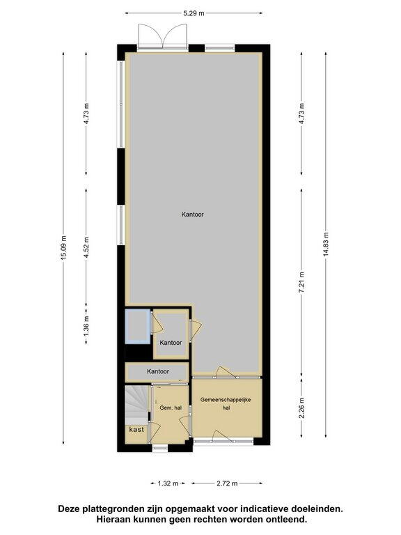 het kantoordeel op de begane grond wordt door de eigenaar gebruikt.